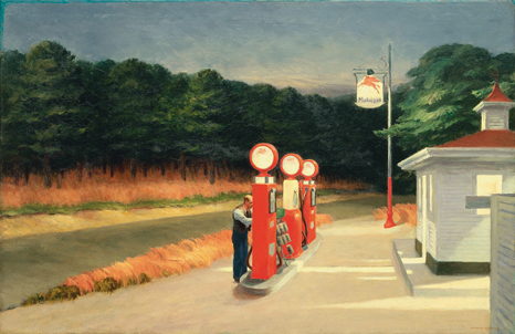 La exposición se articula en torno a un hilo cronológico, que marca también la propia evolución del artista. Una primera etapa de formación (1900-1924), donde en oposición al academicismo imperante, empieza a acercarse al realismo y a conocer la pintura impresionista, tras repetidas estancias en París, que irán configurando un estilo único y singular. En una segunda etapa, la muestra se adentra temáticamente en su trayectoria de madurez, con producción de temáticas recurrentes en su pintura. El paisaje urbano americano es uno de ellos. Un paisaje construido, de ciudades, suburbios, casas..., drásticas visiones que reflejan ásperamente el desasosiego y la tristeza de la sociedad americana. Así mismo desoladoras estaciones, vías de tren, carreteras y gasolineras que relatan la fascinación por el viaje. |